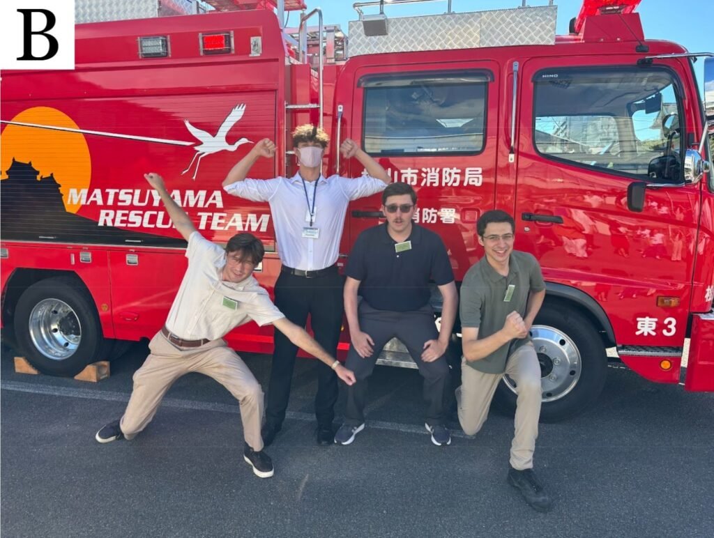 B: 2025 photo of the incoming JET class of 2025. John Matuszewski is on the far right.