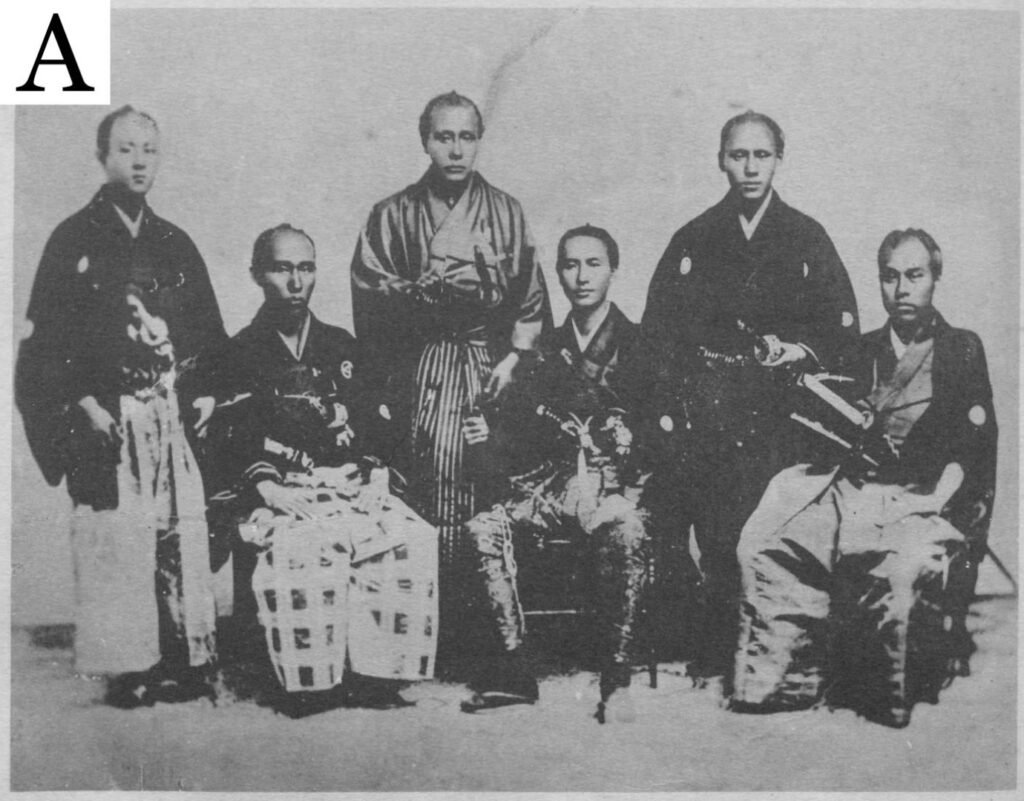 A: 1860 photo of the Kanrin Maru crew in San Francisco. Fukuzawa Yukichi is on the far right.