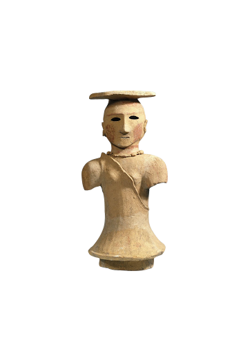 Left: Haniwa Warrior in “Keiko” Armor, 6th Century CE, Tokyo National Museum. Right: Haniwa figure, 5th-6th Century CE, Brooklyn Museum.